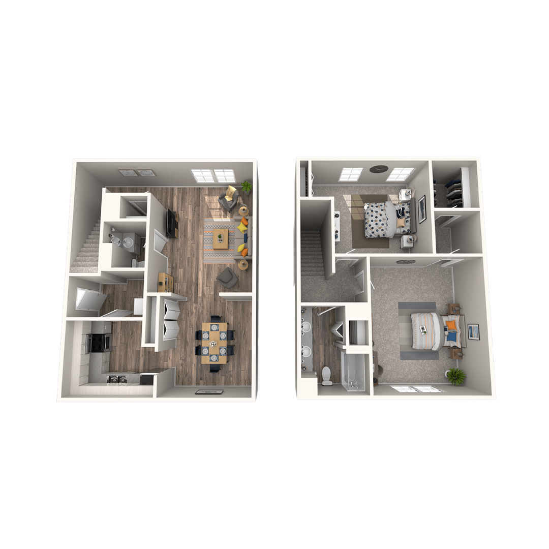 Our Premium Finish 2 Bedroom, 1.5 Bathroom Townhomes offer 1,210 square feet of beautifully designed living space with the most enhanced interior finishes available at Crystal Grove Townhomes.
